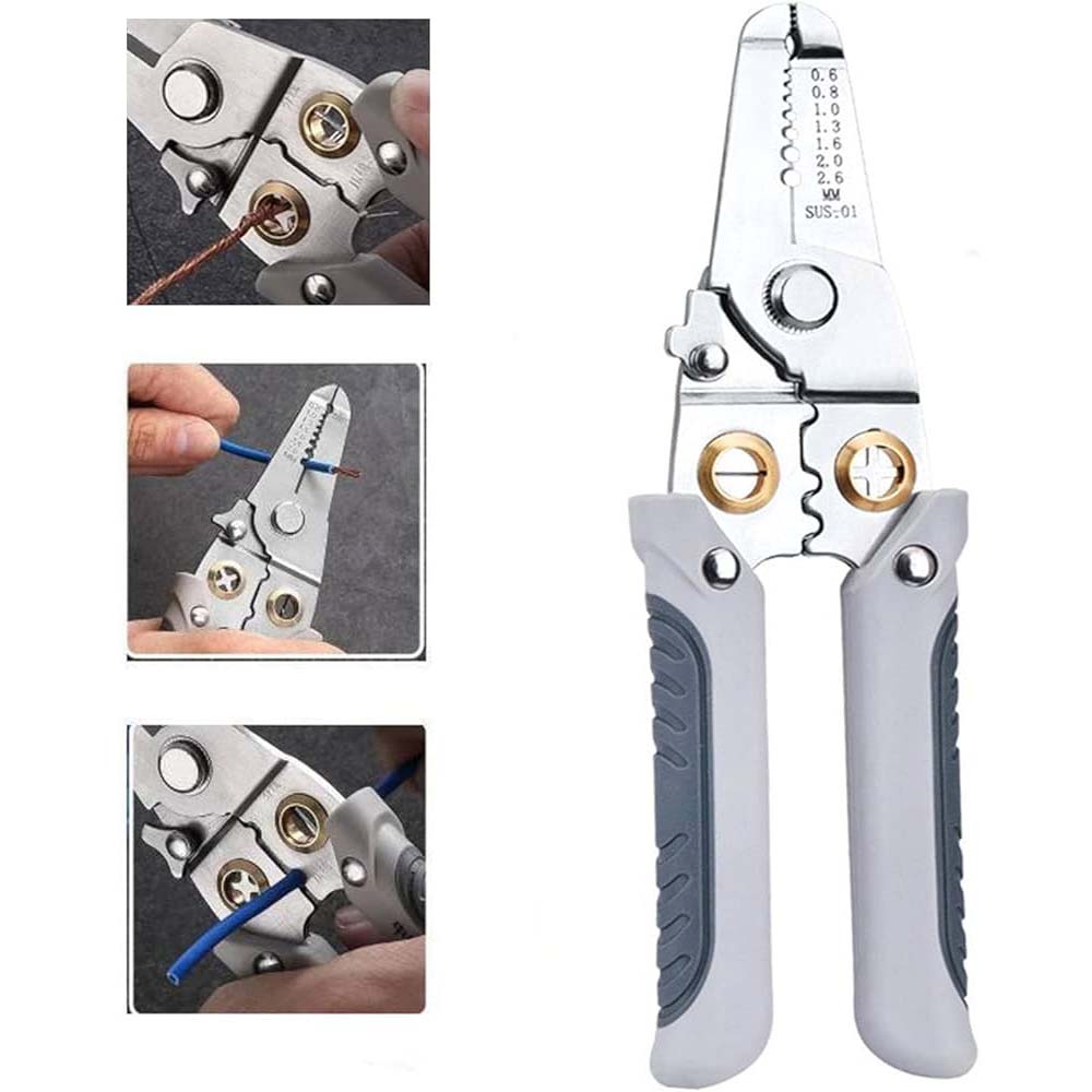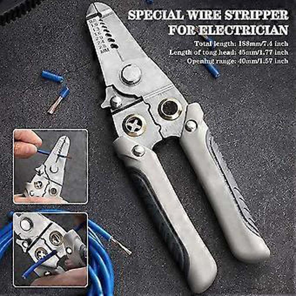 This Stainless Steel Wire Stripper Tool is suitable for stripping, cutting off, crimping insulated terminals of copper wire, aluminum wire, cable, stranded sheathed wire, and bare terminals.