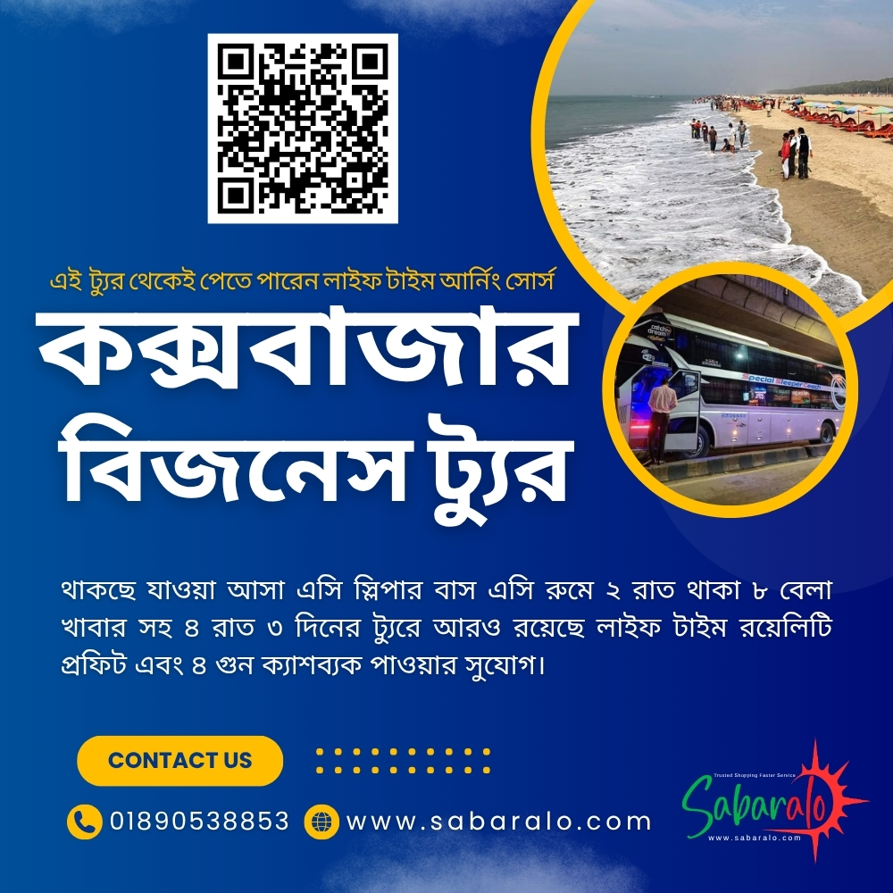 থাকছে যাওয়া আসা এসি স্লিপার বাস এসি রুমে ২ রাত থাকা ৮ বেলা খাবার সহ ৪ রাত ৩ দিনের ট্যুরে আরও রয়েছে লাইফ টাইম রয়েলিটি প্রফিট এবং ৪ গুন ক্যাশব্যক পাওয়ার সুযোগ।বং ৪ গুন ক্যাশব্যক পাওয়ার সুযোগ।