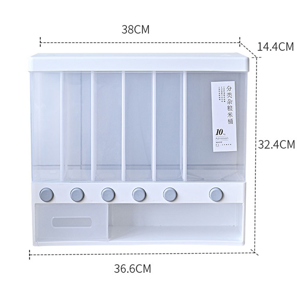 Rice Dispenser Large 6 Grid 10L Rice Wall Mounted Grain Container Storage Cereal Dispenser Pressed Sealed Dry Food Soybean Corn Storage Bin for Home Kitchen