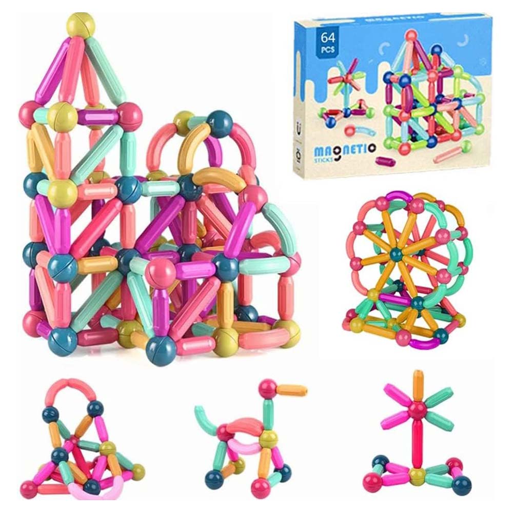 - 64 pieces including magnetic rods and steel balls for unlimited building possibilities